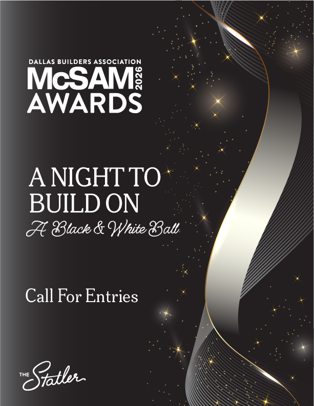 Any materials or products marketed within the Dallas/Ft. Worth Metroplex by a member of the Dallas Builders Association during the calendar year 2025 are eligible for competition. No entry will be judged without payment of the entry fee. All entries must adhere to exact entry requirements and judging criteria. Failure to comply with these specifications will result in disqualification of entry and forfeiture of entry fees. Categories with fewer than three entries may be excluded from award consideration, and entry fees refunded.